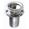in AISI 316 stainless steel, with a blade to prevent water from flowing back to the engine. External edge with groove to prevent engine exhaust water from dirtying the stern of the boat. Complete with counter flange for fixing.