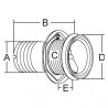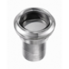 in AISI 316 stainless steel, with a blade to prevent water from flowing back to the engine. External edge with groove to prevent engine exhaust water from dirtying the stern of the boat. Complete with counter flange for fixing.