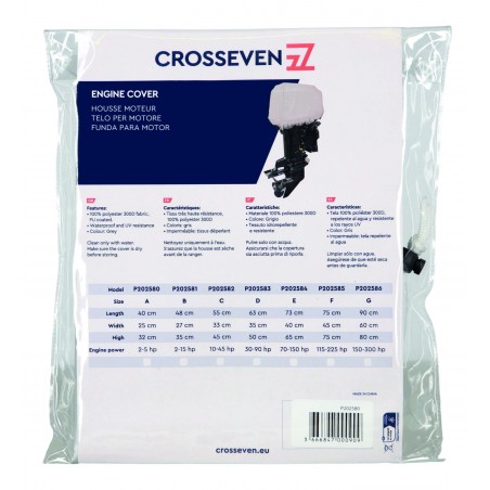 Made of 100% polyester 300D fabric with a polyurethane coating, it provides waterproof and UV-resistant protection. It should only be cleaned with water and dried thoroughly before being stored. Grey colour.