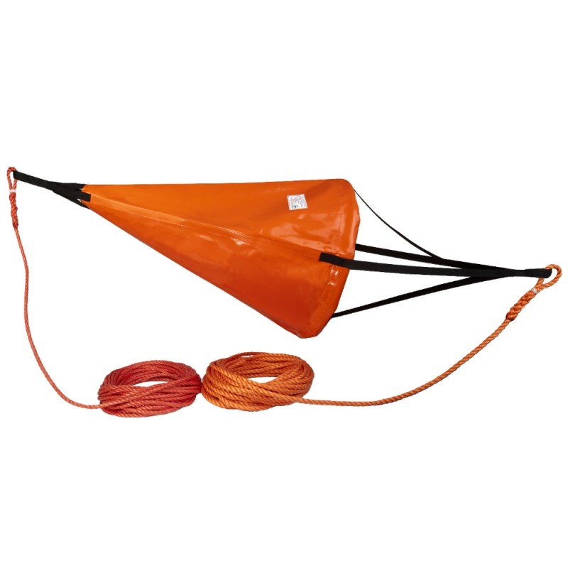 Floating anchor for rescue boats, double coated PVC fabric, complete with cables. RINA approved.