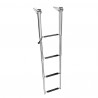 Stainless steel telescopic boarding ladder swivelling above platform mounting. Non-slip steps made of black plastic.