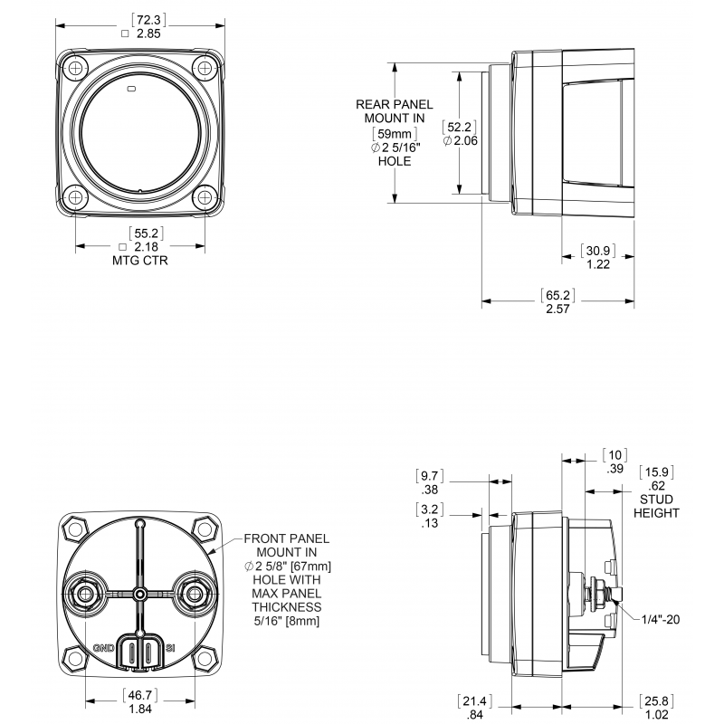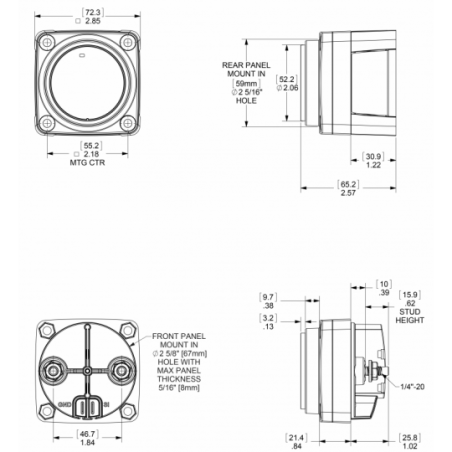 watertight, designed to handle the charging current from alternators up to 65 Amp found on most outboard and many inboard engines. External or flush-mounted. Original ref. 7601