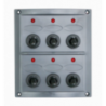 fuses on the rear panel and adhesive symbols. Switches 12 V, 15 Amp.