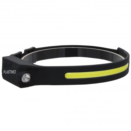 Headband head torch, rechargeable via USB-C (cable included), with 53 super-bright LEDs. 1200 mAh lithium battery. Charging time 2.5 hours. Switch with motion sensor. Splash-proof IP44.
