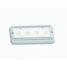 LED ceiling light for engine compartment with white painted aluminum body. Flat mounting. Cold light (5500 / 6300K). Splash resistant. Beam angle 110 °. Duration