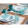 Table service made of 100% melamine, BPA Free. Decorated with coral designs. Dishwasher safe.