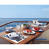 Tableware made of 100% melamine. In shades of navy blue and white. Dishwasher-safe. The crockery, cups and glasses have a non-slip ring at the base that prevents them from slipping on the table.