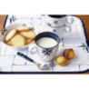Tableware made of 100% melamine. In shades of navy blue and white. Dishwasher-safe. The crockery, cups and glasses have a non-slip ring at the base that prevents them from slipping on the table.