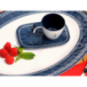 Tableware made of 100% melamine, BPA free. In shades of navy blue and white, its hammered design gives the effect of porcelain. Dishwasher-safe.