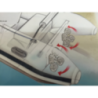 for hauling and launching pneumatic boats, aluminum and fiberglass boats. Made of plastic material, maximum motor capacity including kg.110. Mounting on the transom. Height mm.300, Ø wheels 135 mm