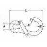Carabine in AISI 316 stainless steel, with special asymmetric opening. Size: D 8mm. L 80mm. A 12mm. E 19mm.