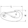 Snap in AISI 316 stainless steel with spring opening. Size: L 50mm. W 24mm. D 6,5mm. E 10mm.