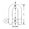 AISI 316 S.S. Long shackles with captive pin with double thread. Size: Ø 4 mm. A 30 mm. B 8 mm. C 40 mm. Pack 10 pieces.