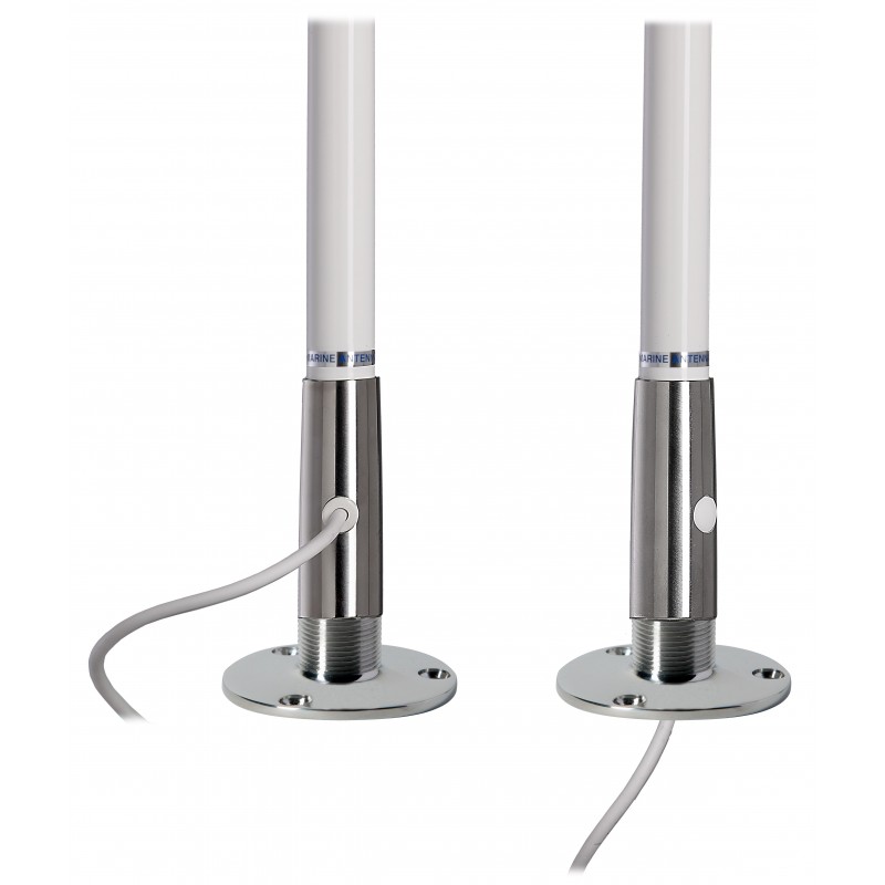New high-performance, compact TITAN series VHF antenna that combines technical features of robustness and performance in just 1.2 m in length. Constructed with a solid 2 mm thick fibreglass body and an electro-polished AISI 316 stainless steel fitting with an exclusive conical design. Supplied with a 6 m low-loss RG-58 coaxial cable with pre-installed female FME connector, allowing quick connection of the antenna to the VHF device without the need for connections and soldering. An FME male/PL male adapter is supplied with the antenna. It adapts to different installation methods: the cable can be easily removed from the side hole of the steel connector and fed out from the bottom of the connector to allow the antenna to be installed on supports with a cable passage slot. A sealing cap is supplied with the antenna to close the side hole. The internal construction features solid brass and copper components that are perfectly sealed and protected from water and atmospheric agents, thanks to the original foam injection system that allows the antenna to achieve an IP69 waterproof rating.