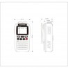 Floating VHF. Power 1/3.5 W. Frequencies 156-163.275 MHz. Battery life 13 hours (depending on ratio 5% transmit, 5% receive, 90% standby). Built-in lithium-ion battery delivering 1750 mA. Dual Watch, Triple Watch and Scan functions. Weather function (10 channels and alerts, USA only). Vibrating water drainage: drains water from the speaker. Direct access to channel 16 or a programmable favourite channel. Large backlit LCD screen (34 x 25 mm). Keypad with large backlit keys. Operating temperature: -20 to +60°C. IPX7 waterproof: protected against submersion to 1 m for 30 minutes (provided the USB-C socket cap is fully closed). Charging via waterproof USB-C port.
