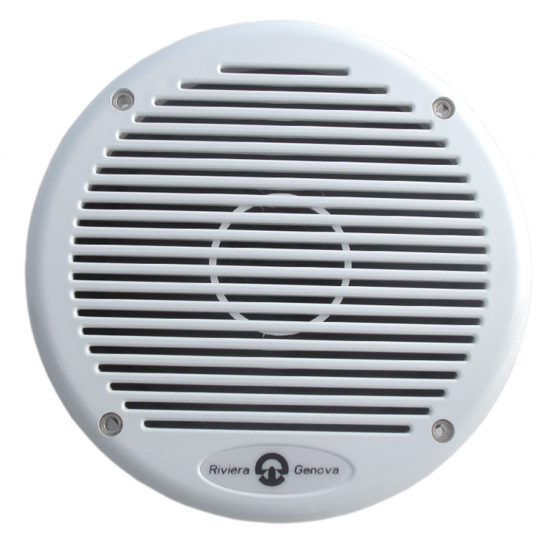 Pair of marine speakers made of white UV-resistant plastic, waterproof, very thin, suitable for very small spaces. Amagnetic (do not disturb on-board electronic equipment, double cone).