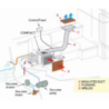 KIT COMPACT 3.5 RC - Plant of 3500BTU/H. To air-condition cabin volume up to 8 m3. Ideal for inverter operation at 12VDC. Dimensions mm 381 x 204 x 224H. Kit contain: motor , graduated panel Cabin Ave Warm/cold , Insulated pipe d. 102 mm., 3 m, pipe connection d. 100 mm., triangular plenum 230x131x145 , intake strainer 244x244 mm. , strainer 200x76 mm., centrifugal pump MD 45 W., 15 l/min. Brass Intake strainer 1/ 2” , chromed brass through hull 1/ 2” , ball valve 1/ 2” , polypropylene water filter 1/ 2”