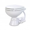Designer electric toilet in white glass ceramic. High-performance macerator pump. Self-priming flush pump up to 1.2 metres designed to carry seawater. The integrated backflow prevention device protects against flooding and waste return. Can be installed up to 1 metre below the waterline.