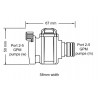 Mini filter with 40 meshes per square inch in straight design, inlet plug-in connection (f) for Jabsco / Flojet ports 2-4 GPM, outlet plug-in connection (m) for Jabsco / Flojet pumps 2-4 GPM.