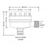 Pumpgard filter with 40 meshes per square inch (approx. 0.4 mm openings) at 90° with 1/2’ threaded pipe connection and plug-in outlet for 2-5 GPM Jabsco / Flojet pumps. Maximum flow rate 23 LPM (6 GPM). Maximum pressure 5 bar (70 PSI).