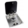 Hob with lid gas with manual ignition, made of mirror-polished stainless steel, with glass lid. Built-in installation. With safety thermocouple. With hole for pot holder. CE certified.