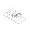 Hob with sink hole gas with manual ignition, in 8 mm thick black tempered glass. Built-in installation. With safety thermocouple. Drain not included. With hole for pot holder. CE certified.