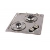 Hob gas with manual ignition, mirror polished stainless steel. Built-in installation. With safety thermocouple. Complete with fixing screws. With hole for pot holder. CE certified.