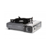Light and compact steel cooker, piezo ignition with cartridge safety locking system for safe use. Easy to clean thanks to grease capture compartment. With carrying case included.