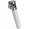Shower in white ABS. Connection 1/ 2” male. Push-button chromed-brass shower head.