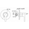 Built-in 3-way shower mixer tap. Ø mm 116, 1/2 "hose connector