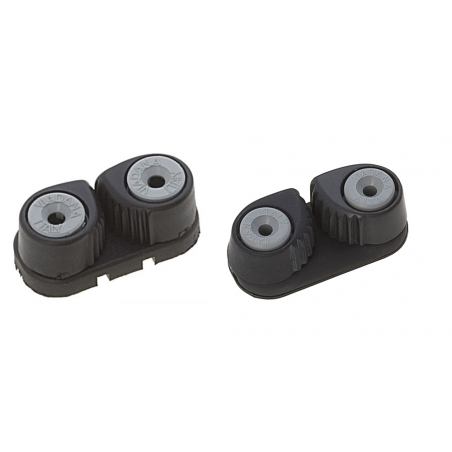 Cam-cleats in alloy. Size: Rope Ø 3-8mm. , Centre distance Ø 27 mm. , Hole Ø 4 , working load 100 kg. , Dims. 47x23x20