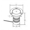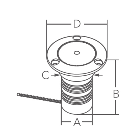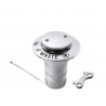Tappo imbarco in fusione di acciaio inox AISI 316 lucidato a specchio completamente a filo, con cavetto inox di sicurezza e molla di richiamo. Per aprire premere e ruotare la parte superiore che fuoriesce automaticamente permettendo di svitare il tappo stesso.