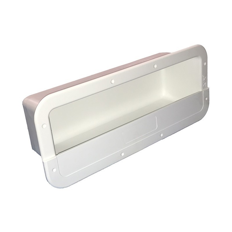 Tasca portaoggetti a parete, colore bianco. Con ferma oggetti bianco.