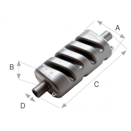 Marmitta-silenziatore di scarico. La sua particolare struttura contribuisce in modo efficace alla riduzione di emissioni rumorose.