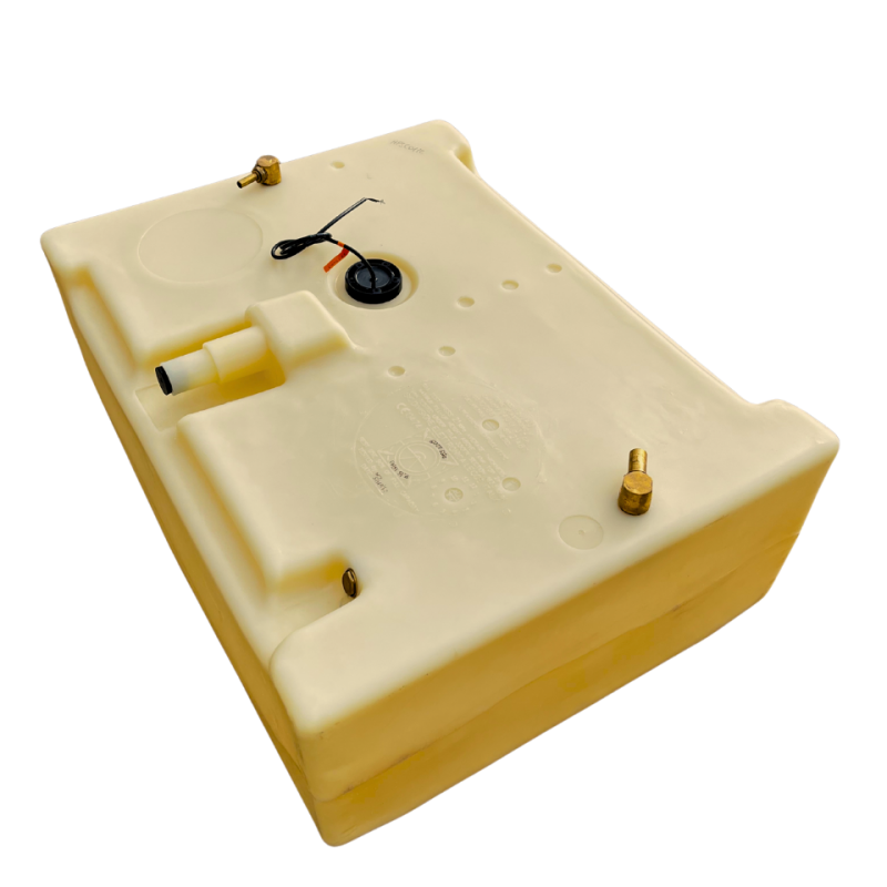 Forma carenata, a sezione trapezioidale rovesciata che segue il profilo e l’inclinazione dello scafo al fine di sfruttare al massimo lo spazio di sentina. Provvisto di sensore di livello universale, può funzionare o a 10-180 ohm o a 240-33 ohm.
