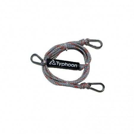 Corda da traino a V con punto di attacco centrale, galleggiante con 2 moschettoni in acciaio inox. Colorazione grigio/arancione ad alta visibilità