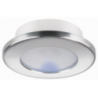 Faretto stagno IP66 ad 1 LED ( 100 Lumen ) ad alta luminosità, luce bianca calda con cornice circolare in acciaio inox AISI 316 lucido.