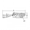 Chiusura in acciaio inox regolabile con foro per lucchetto. Dimensioni lungh. mm. 86-98, larg. 26.