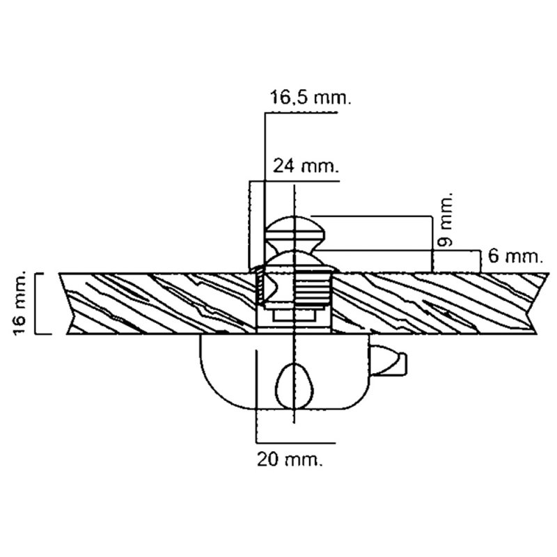 Pulsante in ottone cromato per portelli e cassetti, completi di serratura in plastica bianca, spessore mm. 16