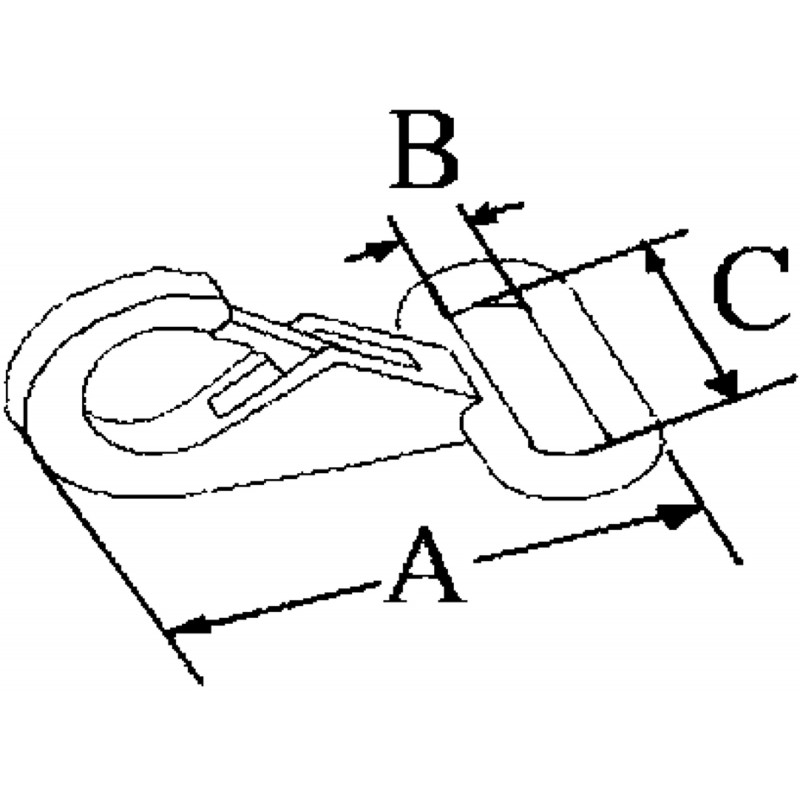 Moschettone in acciaio inox AISI 316, occhio piatto per nastro mm. 25. Ideale per tendere le capottine. Dim. mm. A=50mm. B=6mm. C=25mm.