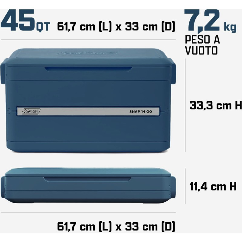 Si riduce a un terzo della sua dimensione per essere facile da trasportare e si apre completamente solo una volta arrivati a destinazione, offrendoti tutto lo spazio di cui hai bisogno. Robusta e con un rivestimento interno removibile in TPU per una pulizia semplice, questa ghiacciaia è la soluzione intelligente e versatile per mantenere freschi i tuoi alimenti e bevande in movimento. Con maniglie laterali, e tenuta stagna.