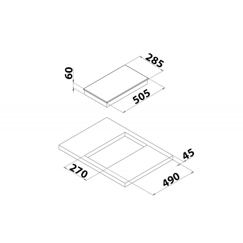 Piano cottura a incasso in vetroceramica, con 2 piastre radianti 220V. 1200/1700 Watt, 6 regolazioni di potenza.