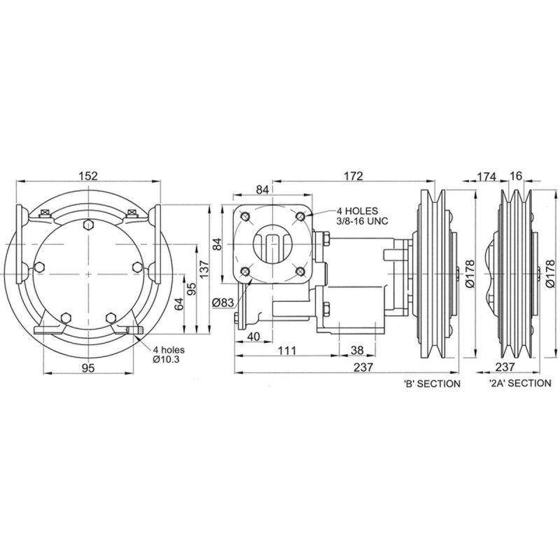 POMPA IN BRONZO 1-1/2" FLANGIATA A FRIZIONE ELETTROMAGNETICA