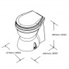 WC marino elettrico in porcellana bianca sedile in plastica fornito con interruttore per il comando della pompa. La particolare carenatura nasconde la pompa maceratrice e i tubi di carico e scarico. Portagomma entrata Ø mm. 20 e uscita Ø mm. 25. Certificati CE ISO 8846 (Ignition Protection).
