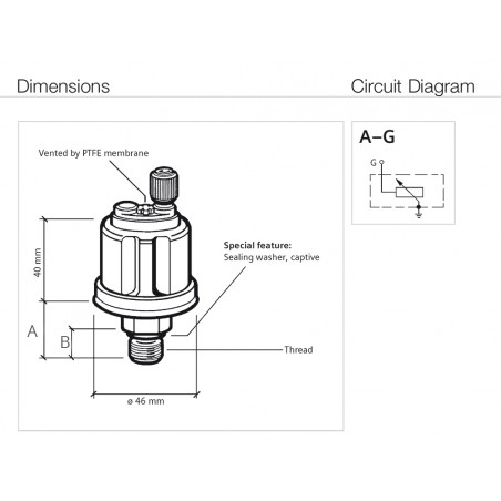 Con bulbo a Massa, connessione con dado zigrinato M4 per terminale ad occhiello. - Art. Vdo 360-081-029-004C